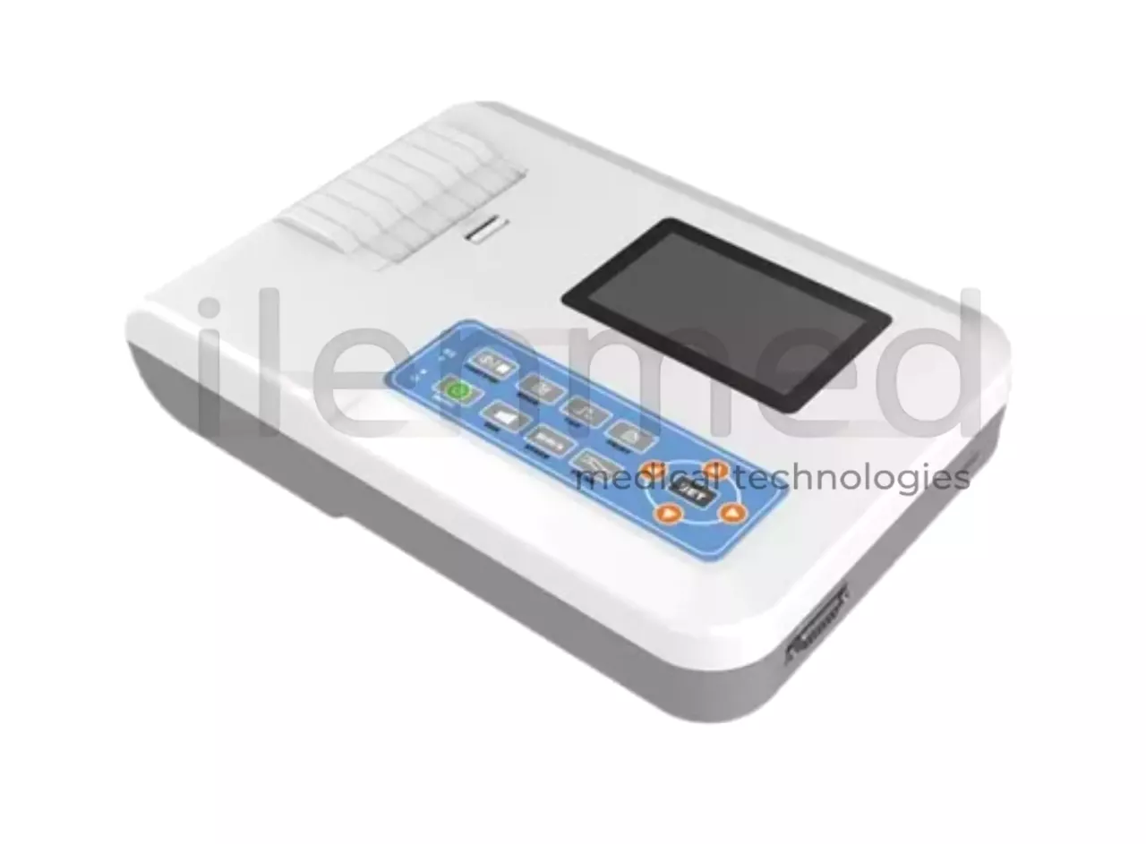 Портативный цифровой электрокардиограф с возможностью регистрации ЭКГ по 12 стандартным отведениям и встроенным термопринтером для печати кардиограмм. Аппарат поддерживает автоматический и ручной режимы записи, автоматическое измерение параметров ЭКГ и удобное управление данными пациентов.