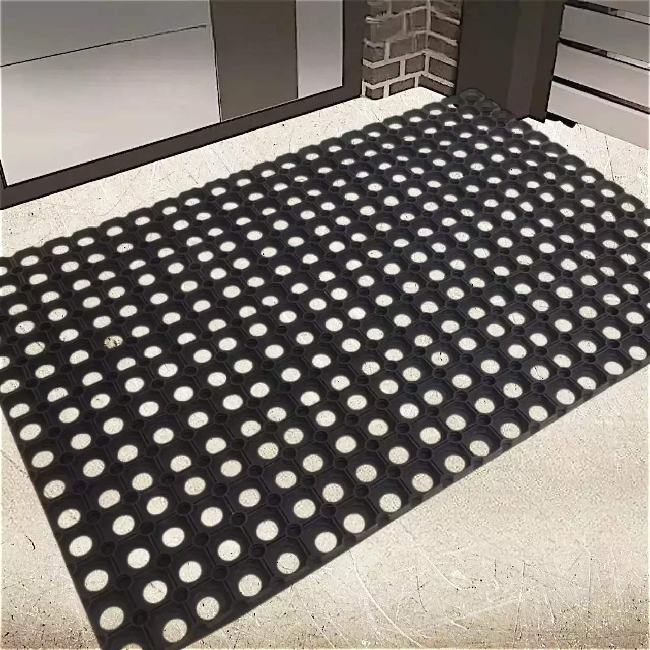 Грязезащитный резиновый коврик ячеистой структуры.