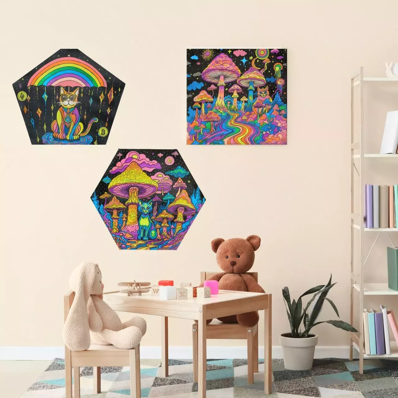 Картины подойдут и деткам, и взрослым, которые ценят юмор, переливающиеся яркие картины и необычный акцент в интерьере)