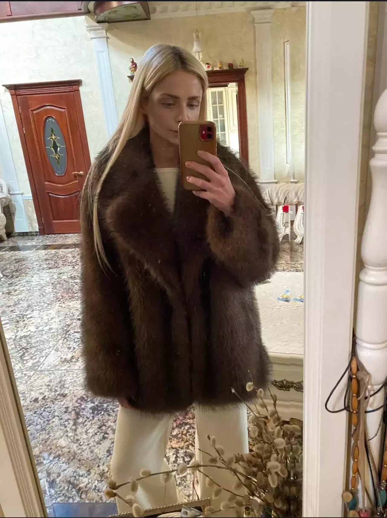 Коричневая шуба.