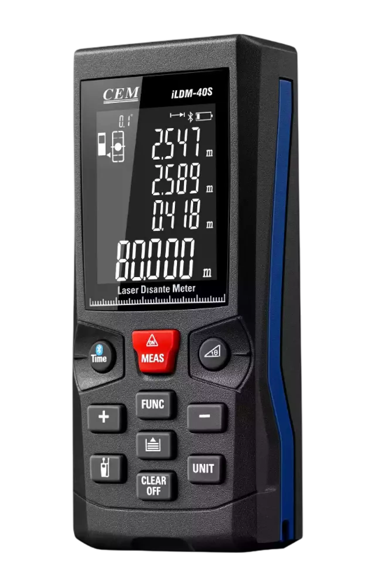 LDM-40S — bu lazer asosida ishlaydigan masofa o‘lchagich bo‘lib, bino, xona, landshaft yoki buyumlar orasidagi masofani tez va aniqlik bilan o‘lchashda ishlatiladi.