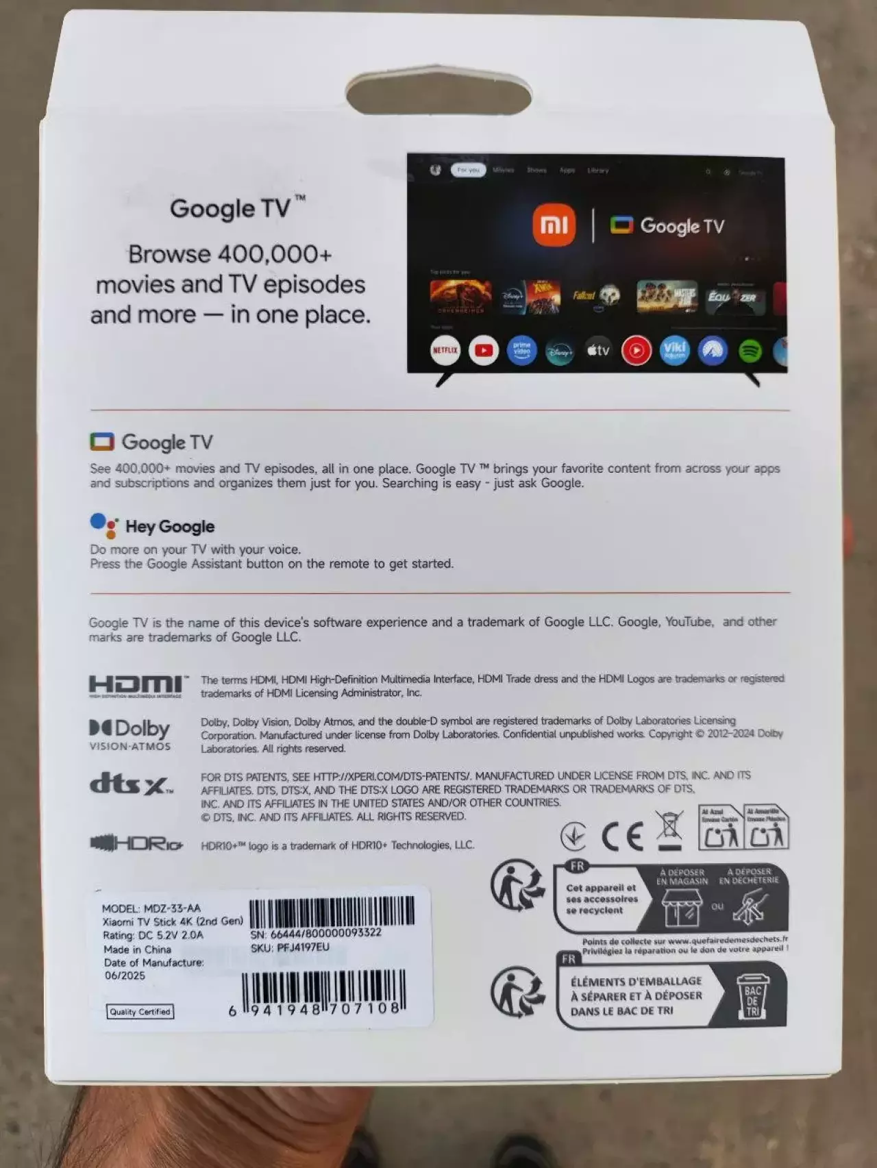 Xiaomi TV Stick 4K (2nd Gen) × 1, Remote control × 1, Power Adapter × 1, User manual × 1