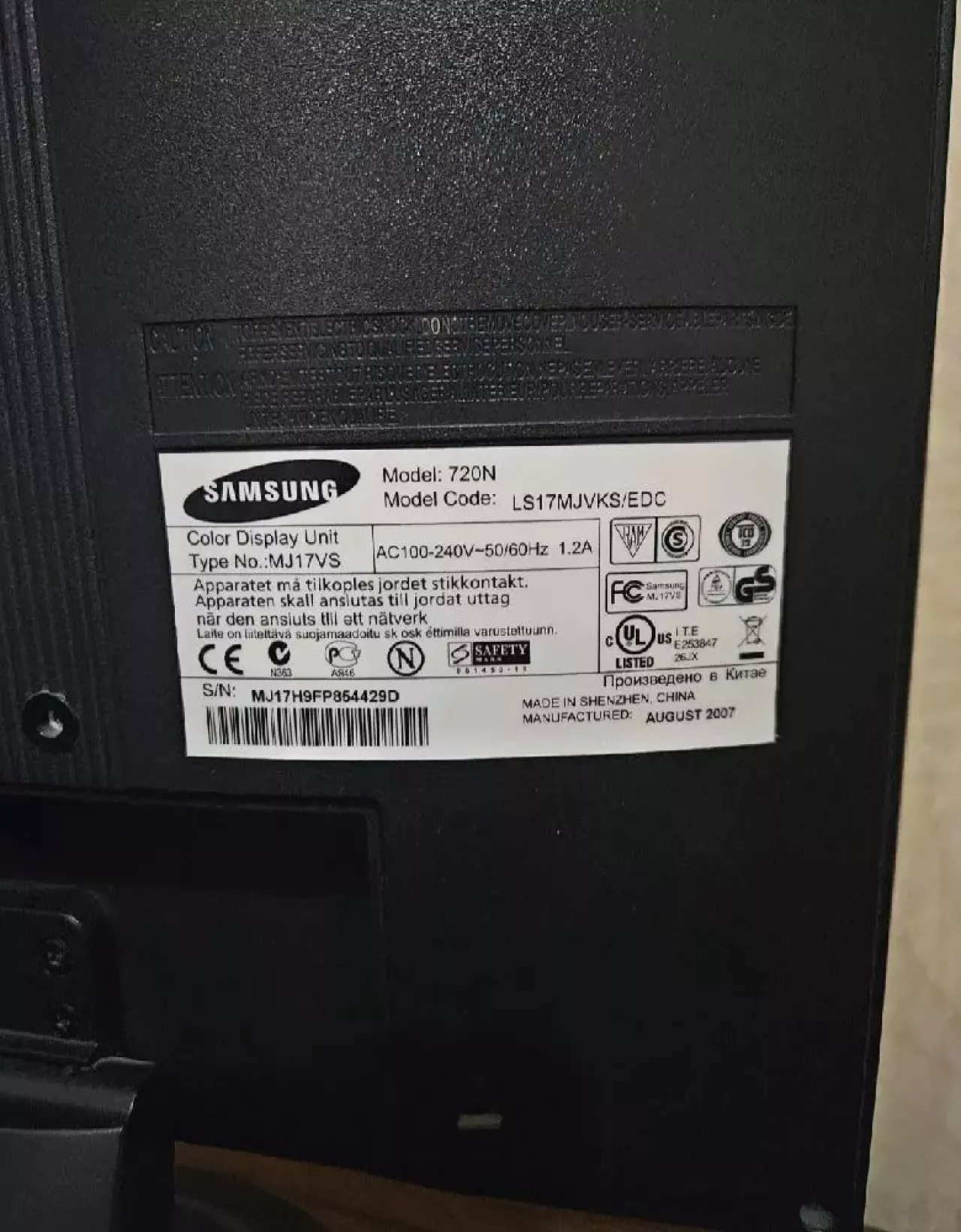 Монитор Samsung Model 720N 17 дюймовый