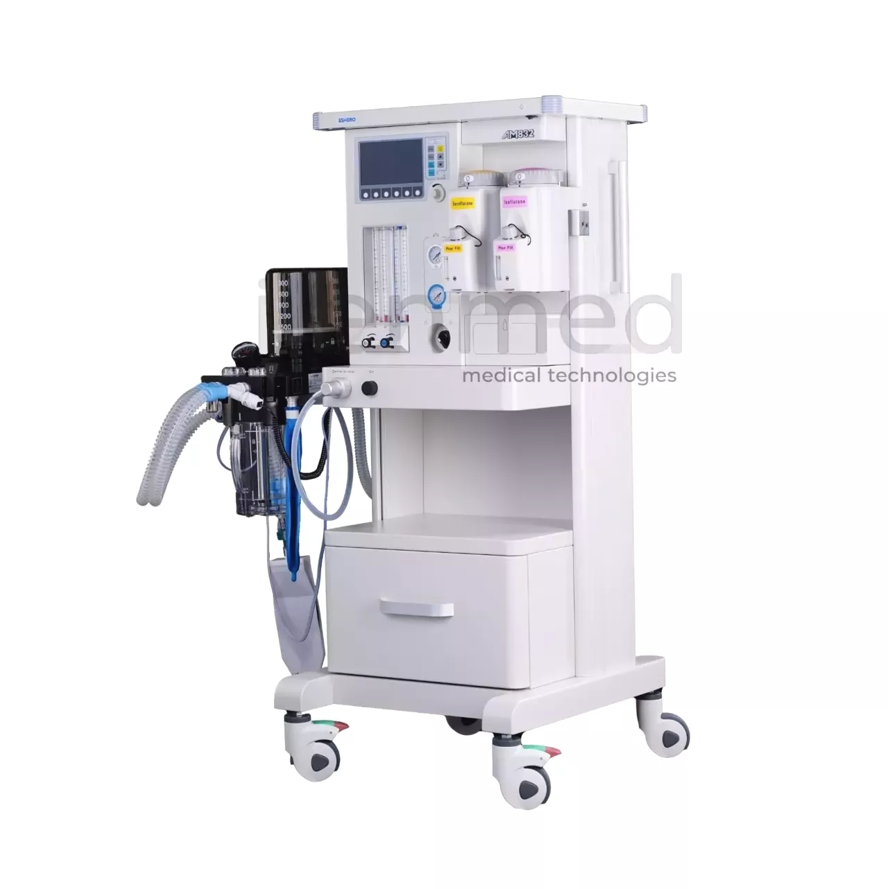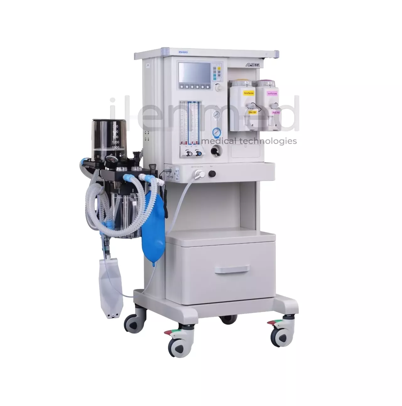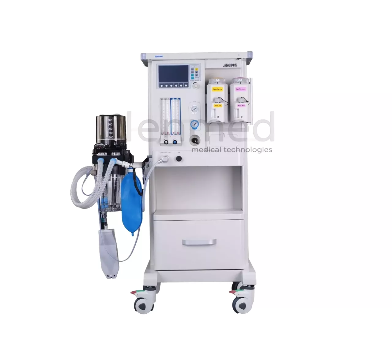 Современная анестезиологическая рабочая станция (наркозно-дыхательный аппарат), предназначенная для проведения ингаляционной анестезии и искусственной вентиляции лёгких пациентов во время хирургических операций. Он сочетает в себе подачу газов, встроенный цифровой вентилятор и систему мониторинга жизненно важных показателей, что делает его универсальным решением для операционных залов и стационаров.