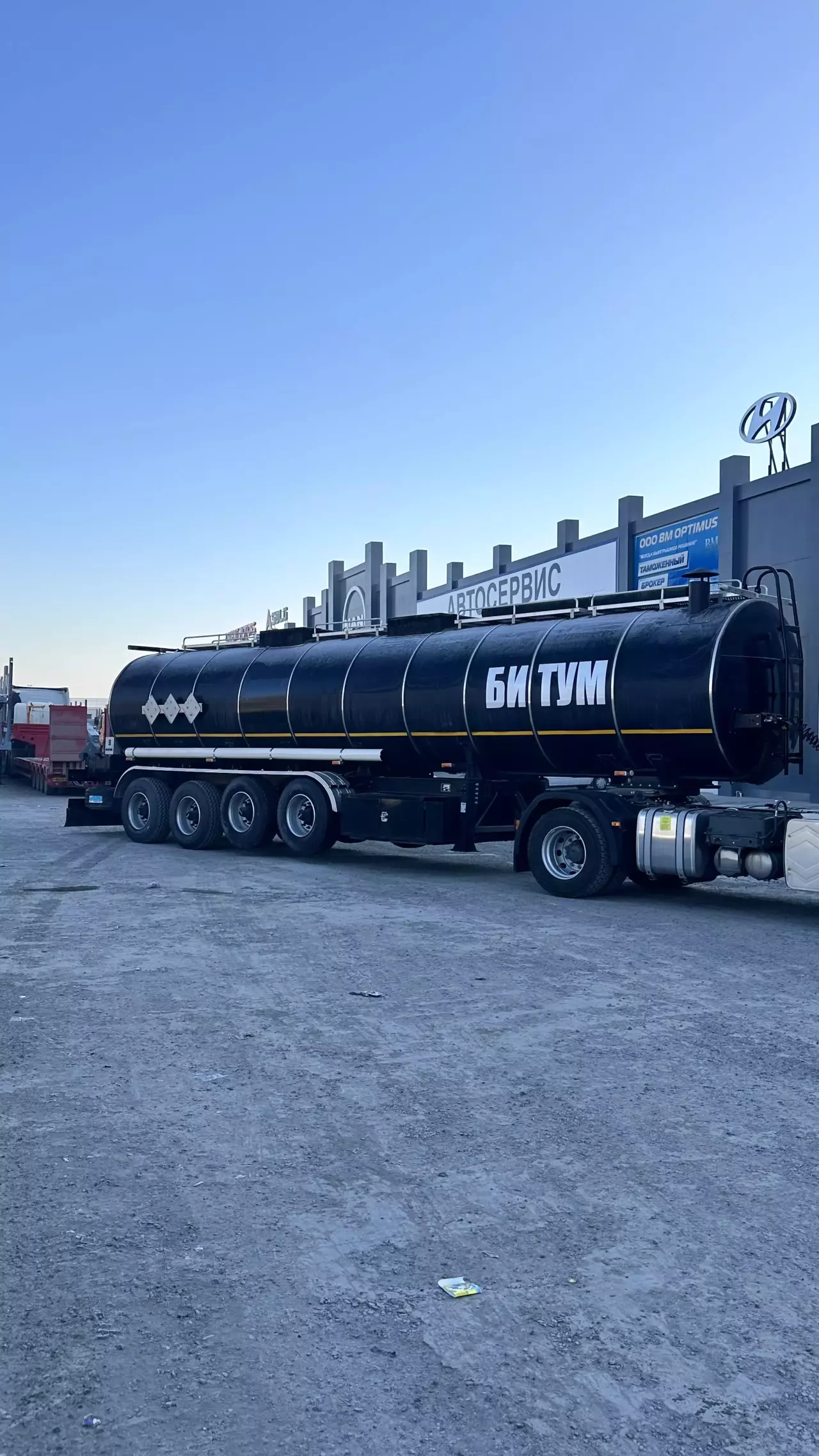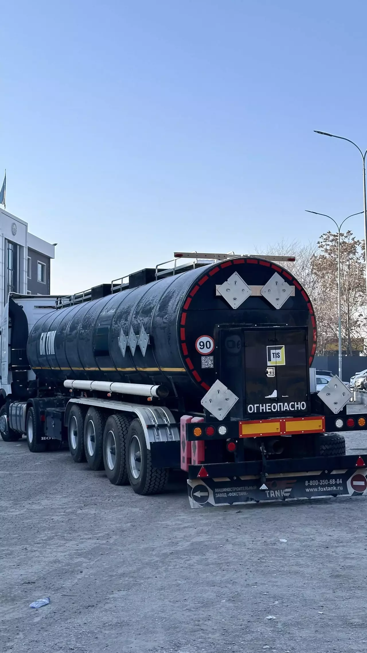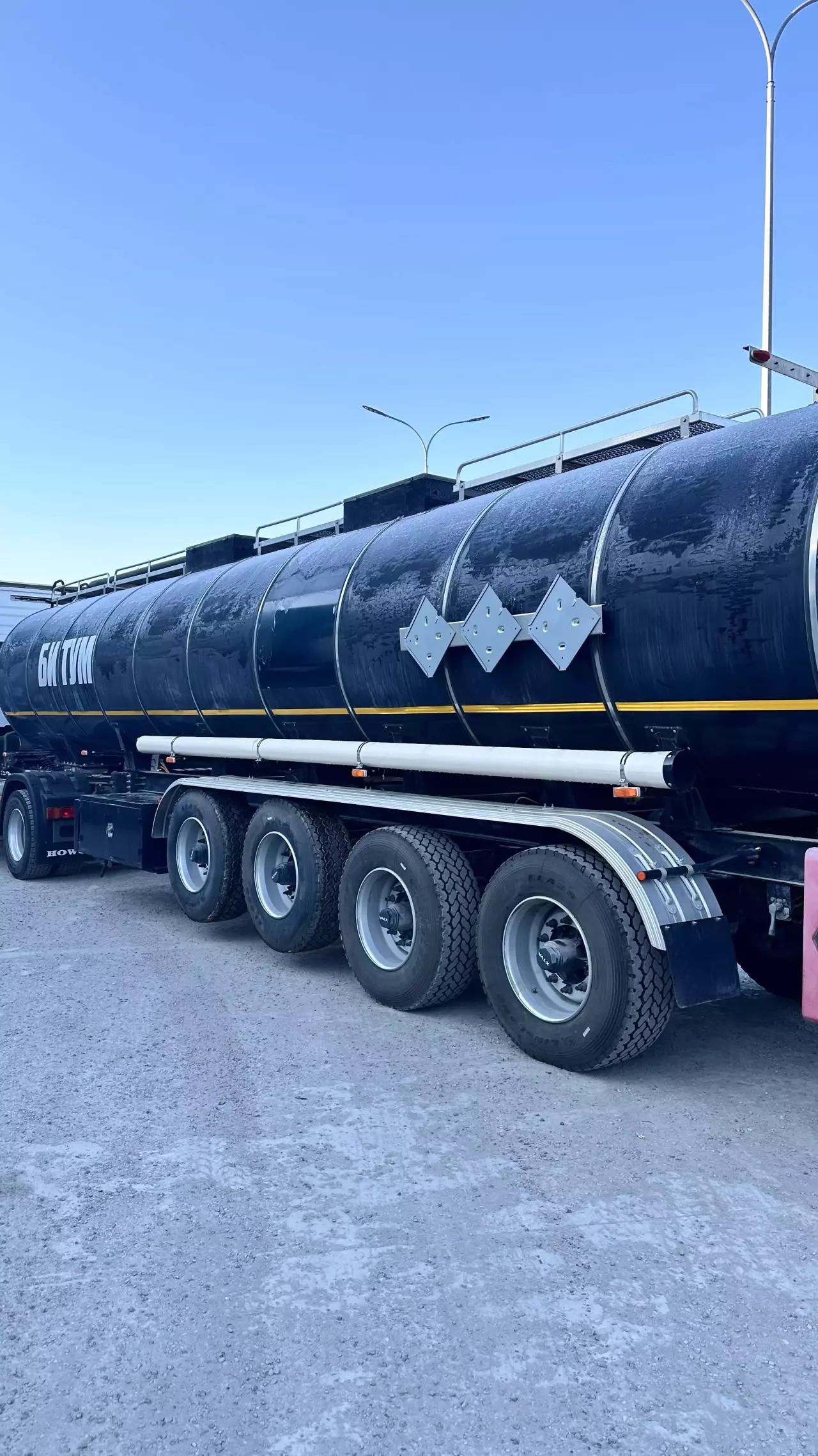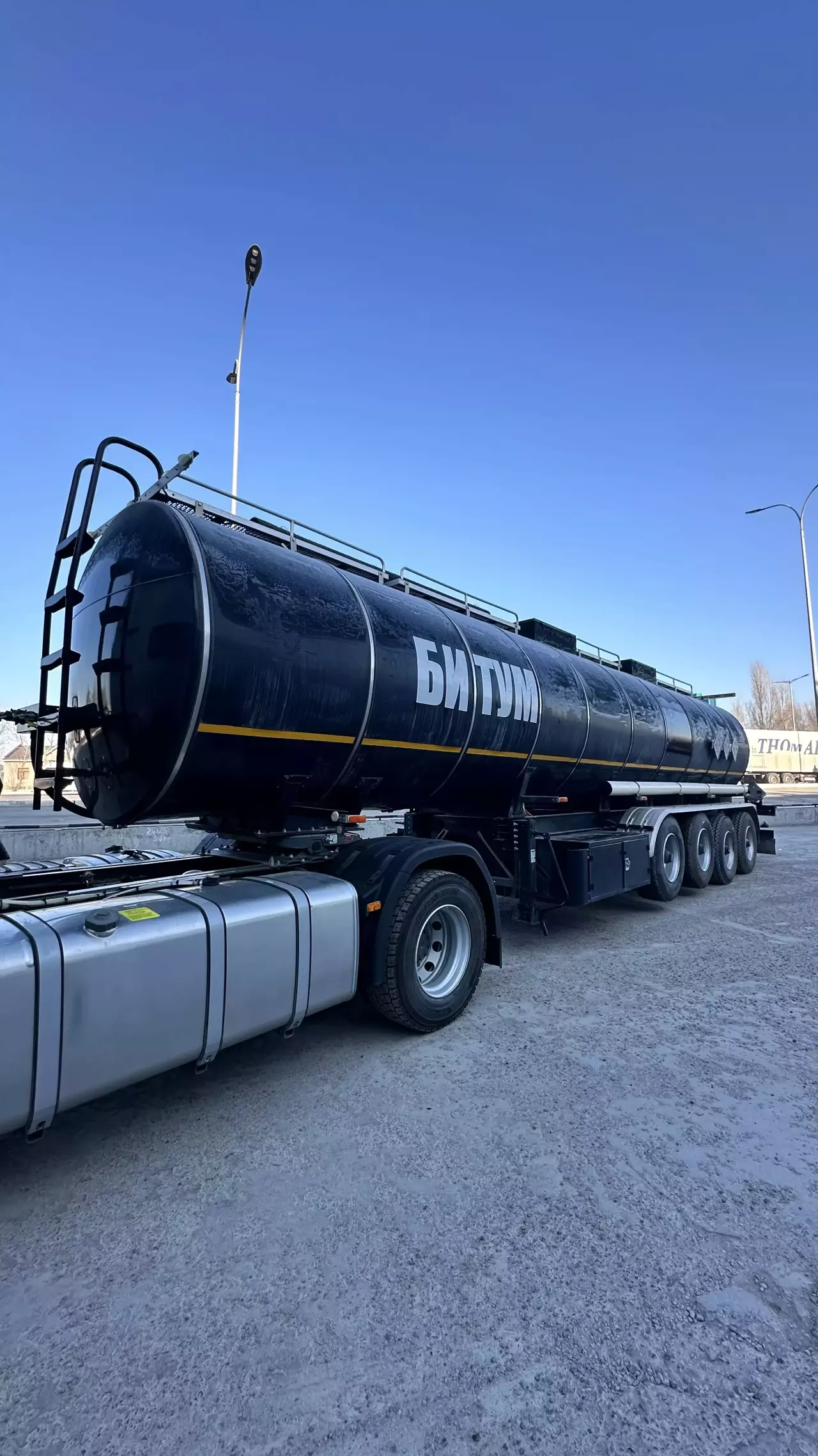 Описание: четырехосный полуприцеп цистерна для транспортировки и временного хранения темных нефтепродуктов (битум, мазут, сырой нефть, смолистая масла и т. п.)