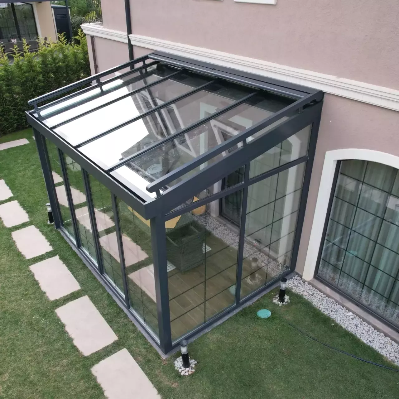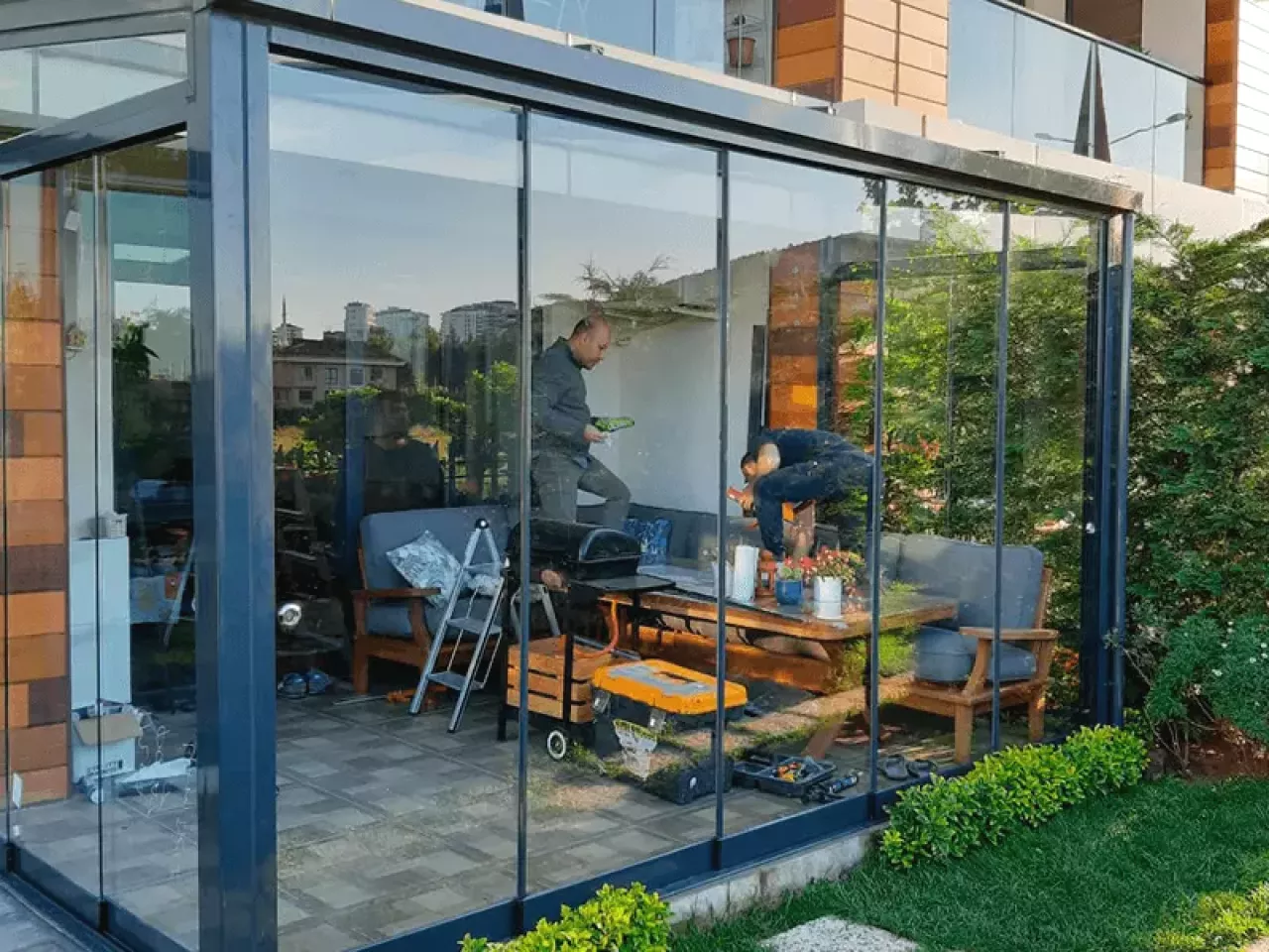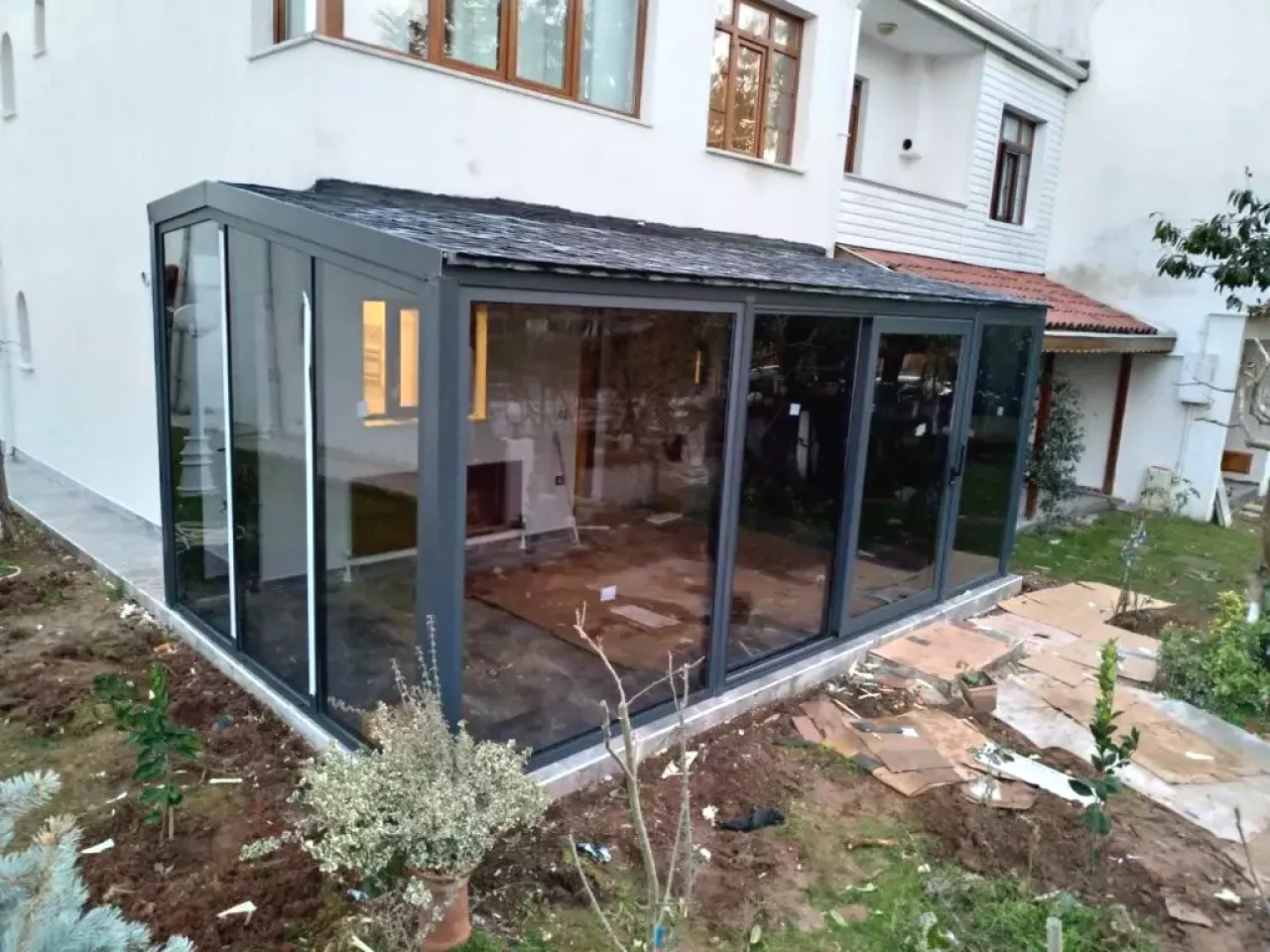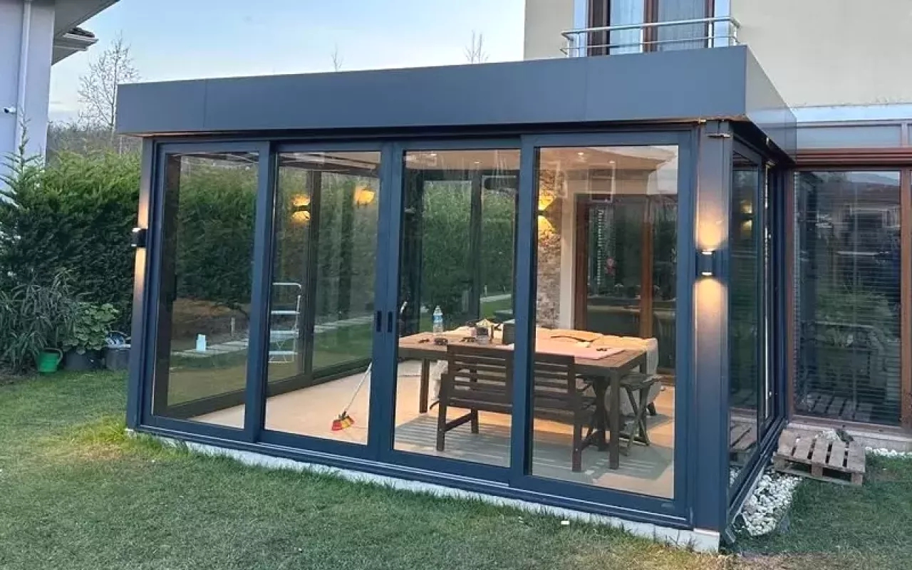 qishki bog', shishali ayvon, alyuminiy profillar, turkiya tizimlari, terrasa yopish, shishali naves, panorama, hovli dizayni, shinam uy, mustahkam konstruksiya, зимний сад, остекление террасы, алюминиевые профили, турецкие материалы, панорамное остекление, зимняя веранда, фасадное остекление, веранда из стекла, алюминиевые системы, расширение пространства.