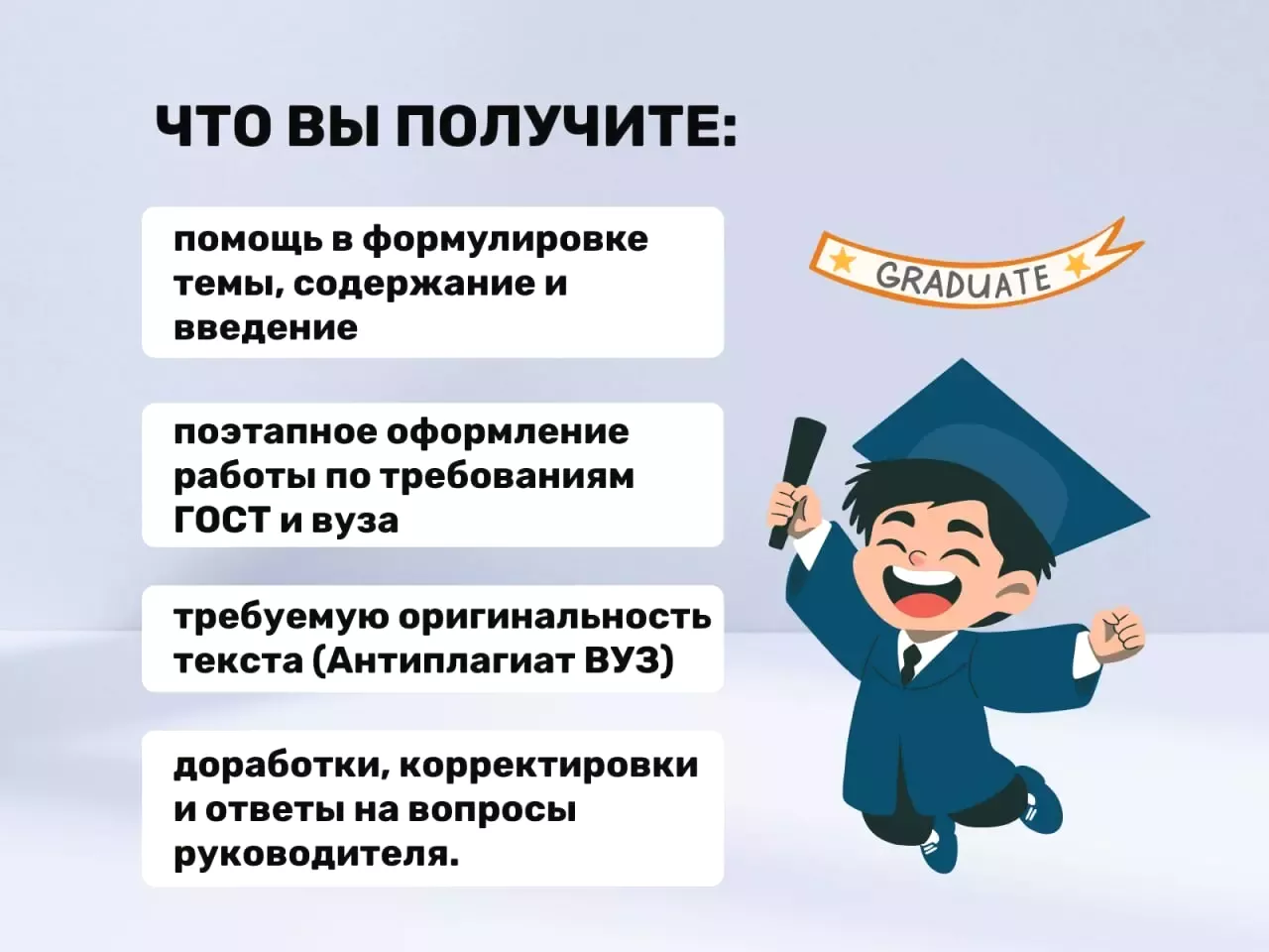 - поэтапное оформление дипломной работы по требованиям ГОСТ и вуза;