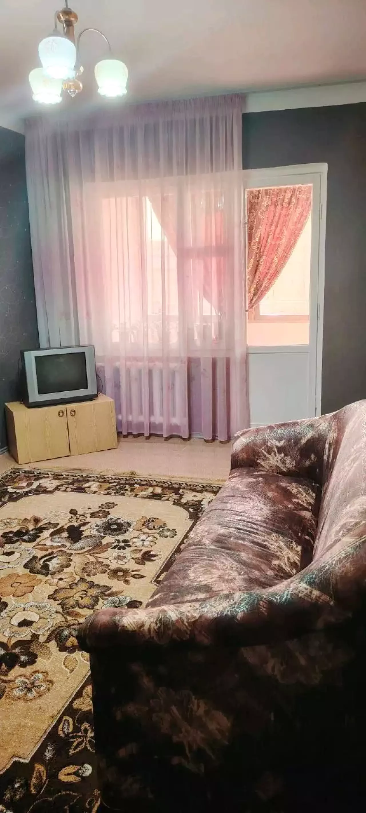 2-комнатная на Караташе для семьи 4-этаж 5-этажного дома всё есть, кроме холодильника,стиральки и кондиционера.