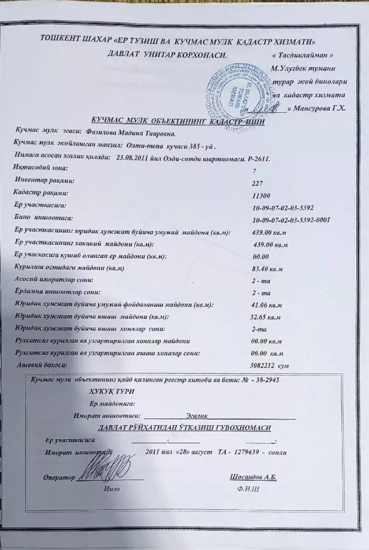 Участок Мирзо-Улугбекский р Олтинтепа