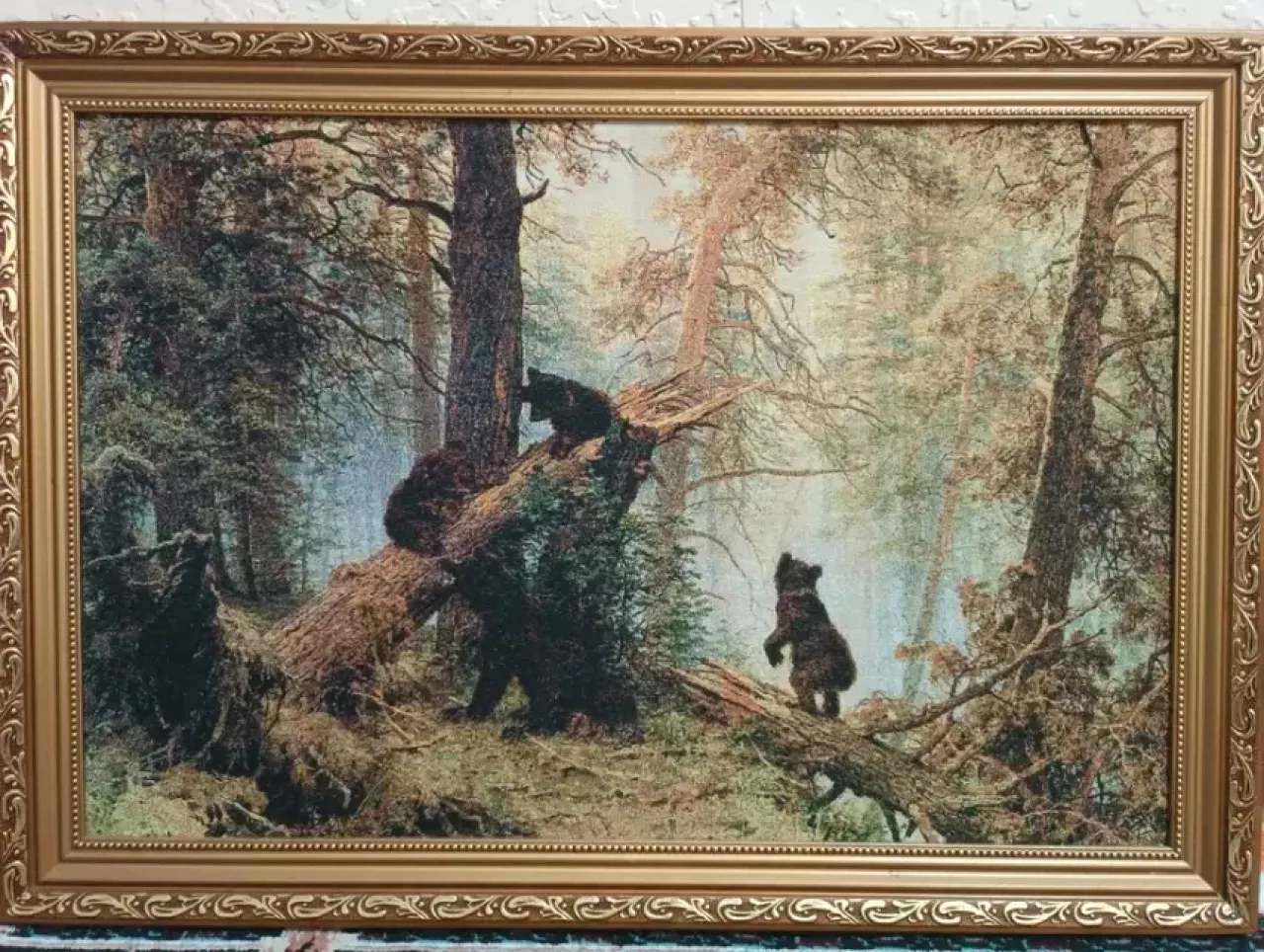Картина вышитая гобелен "Утро в сосновом лесу". Состояние идеальное. Размер: 67см×47см