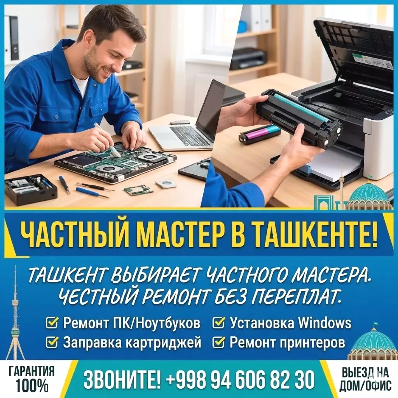 Заправка и ремонт картриджей все моделей (canon, HP, Samsung), а также цветных от 40 000 сум